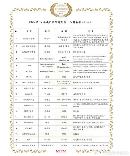 1905电影网讯 第17届澳门国际电影节第二批入围名单公布,陈可辛执导,章子怡、王传君、易烊千玺、赵丽颖、雷佳音、杨幂、大鹏、李现、范伟、此沙、张子枫等出演的《酱园弄·悬案》,游绍翔执导、五月天阿信监制,刘若英和薛仕凌主演的《我们意外的勇气》等19部影片在列。
