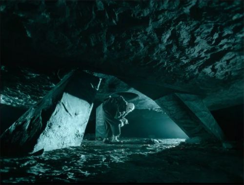 从“大她者”走进地下通道、寻找“迷魂者”的整个过程中,画面呈现出扭曲反透视的建筑布景、高明暗反差的光影、非自然主义的强色调、墙面上的恐怖阴影等明显致敬1920年代德国表现主义电影的视觉风格,电影《诺斯费拉图》《卡里加利博士的小屋》《大都会》都是这类流派的代表作。