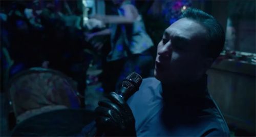 邱默云近似黑色电影里“蛇蝎美人”的人设,他体内的声音让音乐家和长官都着了迷,也都陷入精神混乱。易烊千玺在表演中细腻展露了些许“妖娆”的动作细节。