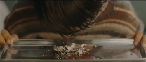 “迷魂者”的身体是一具喻体,如同那个有毒的残破不堪的时代。“大她者”帮他清理充斥在身体里腐烂的罂粟花,随后为他的机械之身装上放映机和胶片,“迷魂者”的身体又成了一具“电影的身体”。