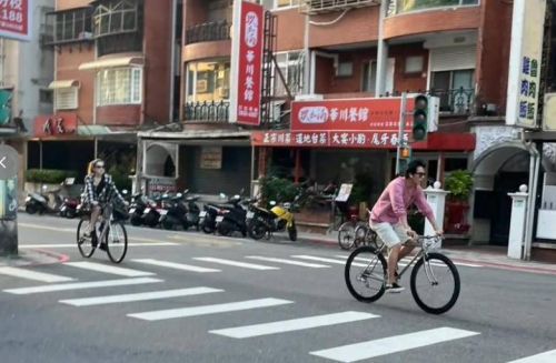 最近他和许玮甯穿着同款情侣鞋,一起在台北街头蹬自行车,笑容格外的松弛。