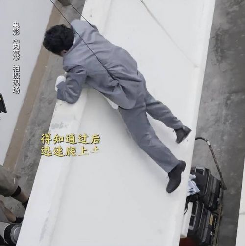 吴镇宇最近在拍《内幕》,亲自上阵吊在13楼外,脸都吓青了,但还是坚持完成,霸气不减。