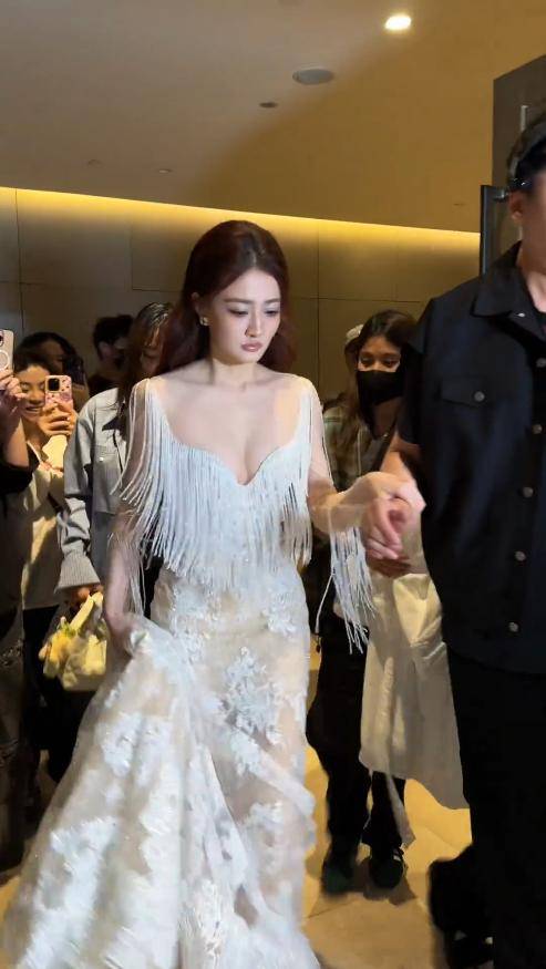 当天,她穿着品牌高定透视礼服压轴出场,那裙子轻薄如纱,灯光一打,整个像海浪一样流动。