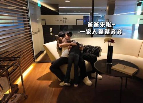 旁边字幕写着“爸爸来啦~一家人整整齐齐”,这哪是旅游,这根本是大型发狗粮现场!