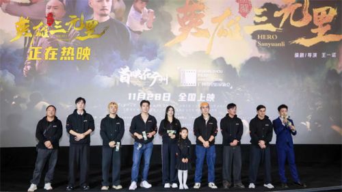 此前,影片在故事发源地广州举办“铭记英魂,守护家国”主题首映礼,青年导演王一诺携领衔主演严屹宽,主演刘秋实、方洋飞、王禹森、李圣雄、马铁摩、龚秩、杨环宇等主创集体亮相,与现场观众深度回溯1841 年103乡百姓自发抗英的壮阔历程。