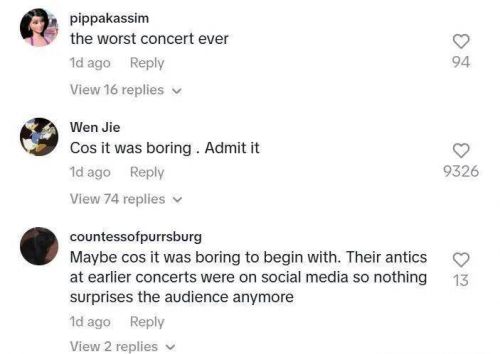 一个双方都难以否认的事实是,即便在为组合辩护的声音中,多数人也承认新加坡首场演出的现场氛围确实不够热烈。无论原因为何,“冷场”似乎成了共识。