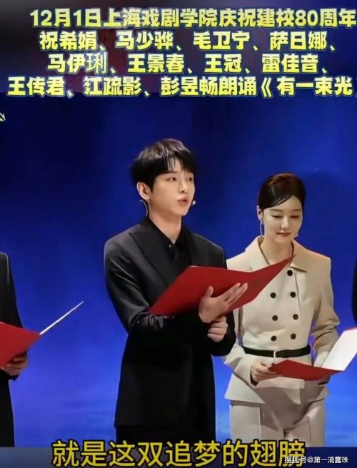 94岁的祝希娟奶奶穿着一身得体的深色套装,站在舞台中央,声音依然洪亮有力。这位《红色娘子军》里的“吴琼花”,是上戏培养的第一代明星校友,如今她身边站着雷佳音、马伊琍、江疏影、彭昱畅等四代校友,从文艺前辈到新生代演员,跨越半个多世纪的身影在聚光灯下交叠,完美诠释了什么叫“薪火相传”。