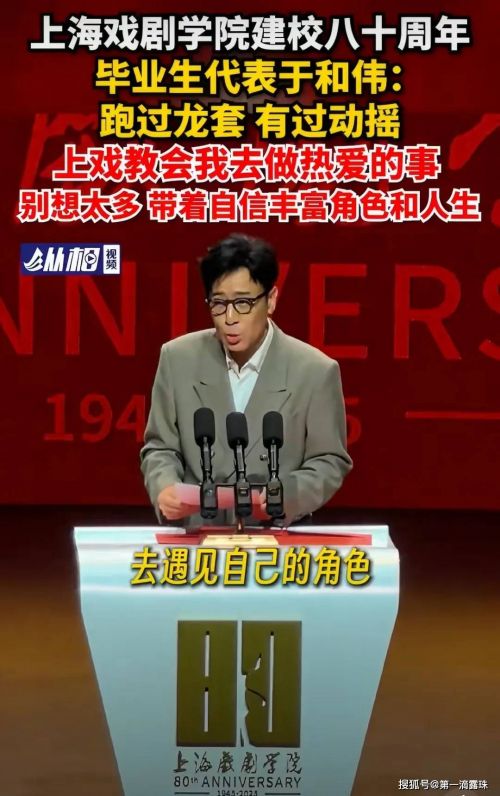 但是于和伟站在母校的舞台上却也带着点紧张,他的发言既谦逊又幽默,说起自己刚毕业的那些年,跑过龙套演过配角,一度怀疑自己不适合当演员,回母校时找老师吐槽,老师们让他牢记演员的初心,坚持耕耘,相信自己。