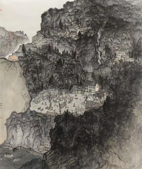 付闻博在节目中还讲述了如何将眼中的龙潭秋景,转化为心中的山水意象,再表现为纸上的笔墨形式。对于付闻博而言,写生不只是收集创作素材的手段,更是一种艺术创作的方式。从山林农家乐到龙潭秋韵,付闻博的艺术创作,有着一贯的风格和主题。他的作品《山林农家乐》成功入选第八届全国青年美术作品展览,充分展现了他在中国画创作上的实力。《山林农家乐》以伊春金祖峰山林农家乐实景为创作素材,运用豪放的写意笔法,通过提炼概括的山形、树形和人物,生动表现了北方山水的独特风貌。这幅作品不仅展现了精湛的艺术技艺,更传递出在祖国护佑下人民安居乐业、享受美好生活的和谐景象。