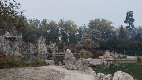 秋日的龙潭湖本就是天然彩墨卷——假山嶙峋、湖水澄澈,元宝枫与银杏褪去葱茏,金黄与绯红的叶片交织出浓淡相宜的色彩。付闻博经实地勘察,将写生点选在游客往来的公园中心区域,这里小桥通幽、假山错落,景致丰富却略显繁杂。他向观众阐释创作理念时坦言,依赖照片创作易丢失现场感受,而写生的价值正在于捕捉石头大小对比、疏密排布的真切质感,提炼感兴趣的元素融入画面,这才是写生的核心意义。
