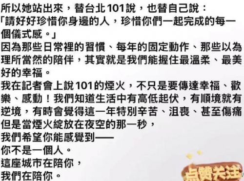 徐家有个传统,每年都要大家聚在一起跨年,而2026年跨年,也是大S缺失的一年,101大厦贾永婕邀请小S跨年录制宣传片《因为有你》,小S为视频宣传,目的是告诉大家珍惜眼前人,贾永婕透露小S哭着录完宣传片,小S还对姐姐说了一句“Remember together forever!”,这句话被大S和具俊晔纹在身上,大S的墓碑上也是这句话,意思是永远相守。