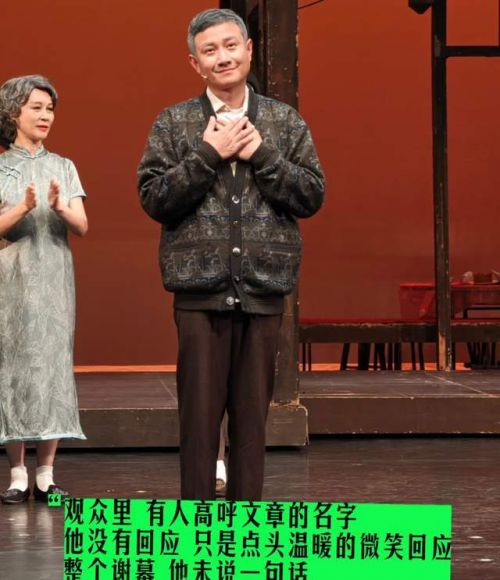 孙坚发文写道:“小文啊,我今夜眼泪止不住啊。小文啊,你的演技是真的好啊”,字里行间都在表达对文章的怜惜。根据文章的造型及孙坚的剧场定位,他晒的是文章出演的话剧《宝岛一村》上海站谢幕场景,也就是当天的演出,可见一切都是由心而发。