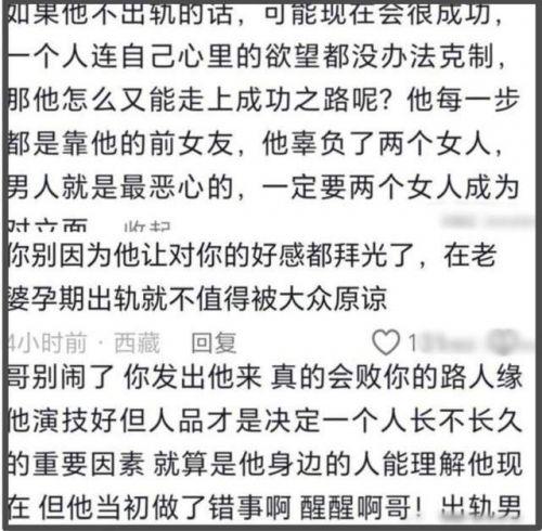 该文发布后,评论区立马引起争议,许多网友声讨他的行为,认为他不尊重自己的女性受众(他现在在带货美妆),不应该支持孕期出轨的文章。还拿李小璐对比,称李小璐至今仍然承受较大的舆论和污言秽语,质问文章有什么值得可惜。