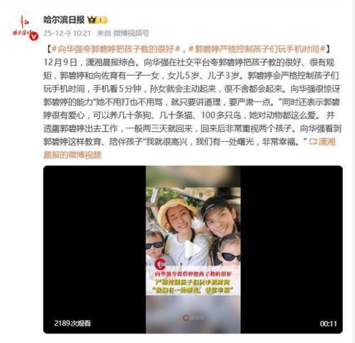 当娱乐圈大佬向华强在镜头前坦言自己教育子女“非常失败”,却对儿媳郭碧婷的育儿能力赞不绝口时,这场豪门内部的“教育评价”瞬间成了热议焦点。一边是叱咤风云的父亲反思过往,一边是温婉儿媳被捧为“家庭曙光”,这反差背后,显然不止是简单的家长里短。