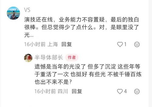 还有位媒体人大V也在网上表扬文章,她的表扬就更加具体,两次强调希望能够在大荧幕上看到文章,而不是局限于这样的小舞台。