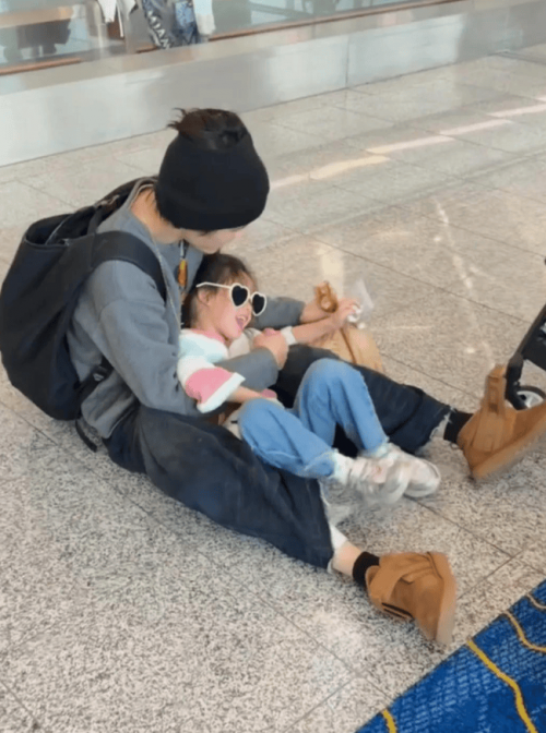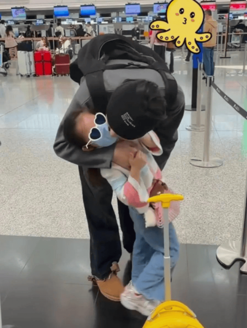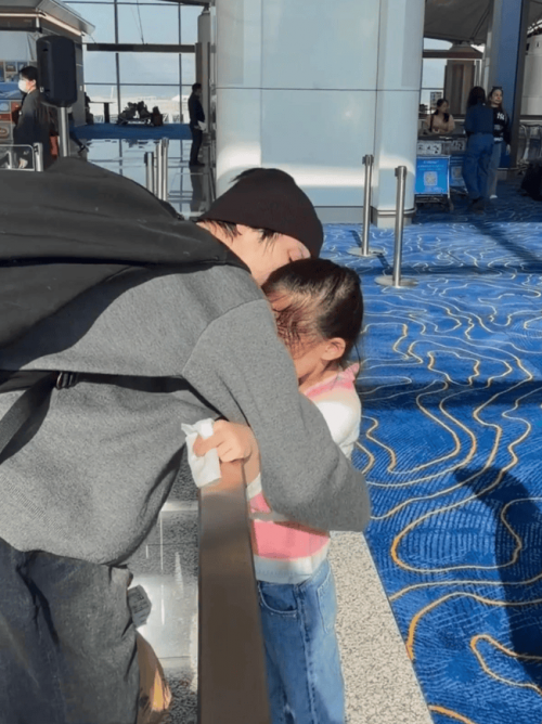 一直哭,向佐也是不停的安抚,也不顾及形象,直接抱着女儿坐地上玩,多陪一下是一下,到登机的时候,小奶黄哭的嘴巴都扁起来了,然后躲进妈妈的怀里偷偷哭,向佐也不好受,眼睛通红,返回来赶紧又亲亲抱抱女儿。