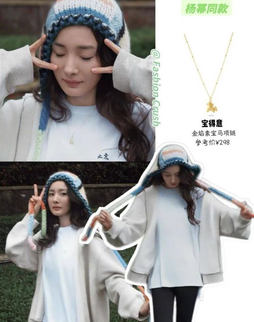 脖子上挂着小马项链、金色首饰点缀,加上那件白卫衣,既显瘦又显青春,会穿还不刻意。
