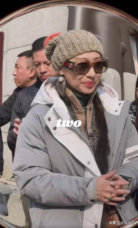 她穿一件灰色大棉袄,款式宽松臃肿,完全没了舞台上的光彩。