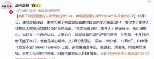 因为朱孝天提前透露了F4的相关工作,从2025年9月开始,朱孝天被频传将不再参与F4的演出。