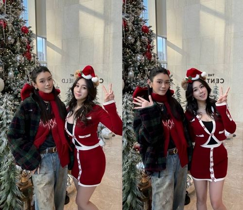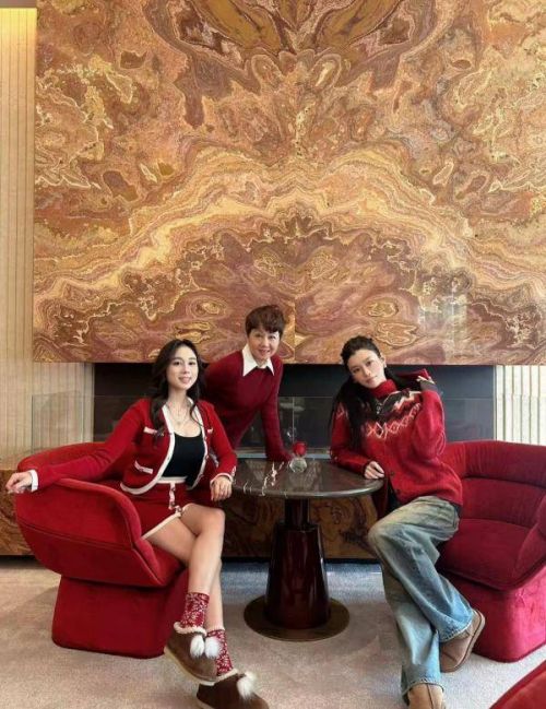 看样子何猷君应该是忙着公司的年会啥的了,家中三个女人一起过还是很有氛围感的,都穿上了红色衣服显得节日氛围很浓,尤其是何超欣穿着低胸吊带搭配套装,露着大长腿,皮肤是真的很白啊!奚梦瑶穿着牛仔裤配红色针织衫,还外搭了一个格子外套,高马尾看起来很有气质。