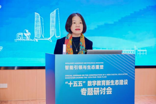 “真正的教育变革不仅是技术的迭代,更在于以技术赋能激活人的主体性,让人工智能服务于人类心智的丰盈。”江苏省南京市教育局二级巡视员、教育部职业院校信息化教学指导委员会委员潘东标在《AI推进教育教学变革的实践探索和哲学思考》主题报告中指出,助力教育强市建设目标的实现,需催生主动智能的智慧环境、孕育知识创生的教学范式,形成认知适配的课程形态,构建沉浸投入的深度学习方式,彻底改变工业时代的教育范式。南京立足全国科学教育实验区基础,形成了AI赋能教育高质量发展的系统路径:将AI教育上升为区域整体战略,通过强有力的行政协同和资源保障,率先成立人工智能中心,实现中小学AI通识课程全域普及;以应用场景驱动教学变革,打造覆盖教、学、管、评、研、育的“百大场景”,并向农村小规模学校、特殊教育群体倾斜,以技术缩小数字鸿沟;将教师队伍建设作为核心,启动“十百千万工程”,开展10万名教师AI素养培训,建立首批AI名师工作室;同时始终将人的培养和伦理思考置于中心位置,确保技术革命服务于教育本质。已发布全国首份《小学生生成式人工智能素养白皮书》,强化伦理导向,引导理性、规范应用。潘东标强调,面向“十五五”的高水平新型教育生态应体现三大指数:慧在师能、智在生态、智在环境。他表示,南京正构建“人机共智、虚实交融、优质均衡”教育新生态,以技术激活人的主体性,为全国教育数字化转型提供可复制经验。