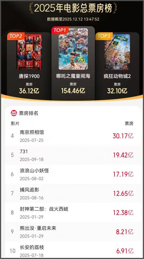 纵观2025年票房榜,从百亿到6亿,动画片票房排名都挺高。难道影视寒冬寒在明星大咖上了?