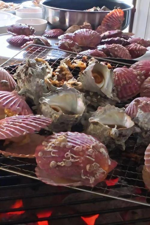 她还准备了大量的海螺、扇贝和生蚝,一同进行烤制。说实话,它看起来相当吸引人,即使是通过屏幕,我也能嗅到它的香气。