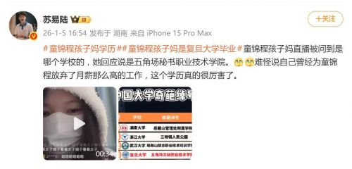 一句“五角场秘书职业技术学院”,瞬间在网络上炸开了锅。网红童锦程孩子妈在直播中的这番学历“自曝”,被网友火速解码为对复旦大学的趣味戏称,随即引爆了关于其“复旦高材生”身份真实性的全网扒皮与论战。