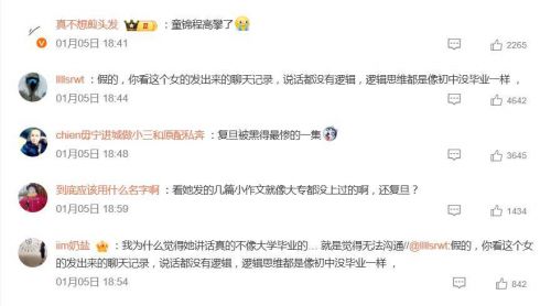 然而,质疑声随即如潮水般涌来。首先被拿来“打假”的,就是她此前小作文中流露出的文笔——逻辑混乱、标点缺失的风格,被部分网友嘲讽“和复旦毕业生的水准差了十条街”。更关键的是,所有推测都停留在“江湖传闻”阶段,毕业证、学信网记录等实锤证据一概没有。面对质疑,女方回应得也相当“互联网”:“又没去你公司面试,上网还需要毕业证?”并明确拒绝网络背调,称不想立什么人设。