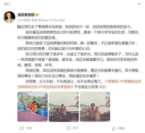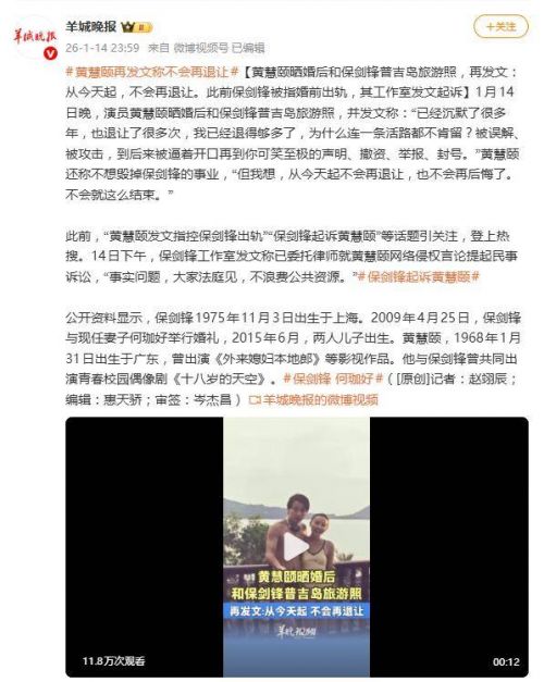 1月14日晚,演员黄慧颐的一波操作,让沉寂多年的娱乐圈“古早CP”猝不及防地炸上了热搜。她不仅晒出与保剑锋在普吉岛的旅游旧照,更配上一篇火药味十足的“宣战
