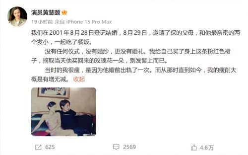 这已不是双方第一次交锋。此前,“黄慧颐指控保剑锋出轨”、“保剑锋起诉黄慧颐”等话题就曾几度掀起波澜。而这一次,黄慧颐抛出了更具体的“炸弹”:她声称两人早在2001年8月28日就已秘密登记结婚,起因是保剑锋出轨被抓包后,飞赴广州当众下跪求婚。她晒出的两张旧照中,自己笑容勉强,而保剑锋则被她形容为“得意丑样”。这场没有婚纱、没有婚礼,仅双方父母和发小见证的“隐婚”,成了她指控的核心证据。
