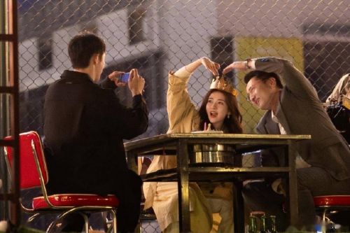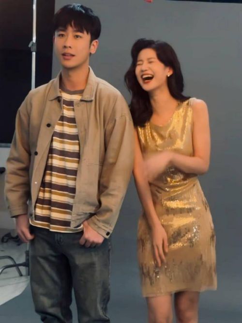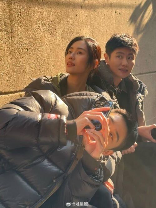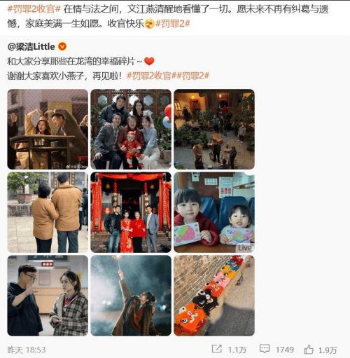 梁洁在剧中饰演文江燕,她发了九宫格的龙湾合照,有跟文妈,跟两个哥哥的,还有偷拍的,还有走戏的。