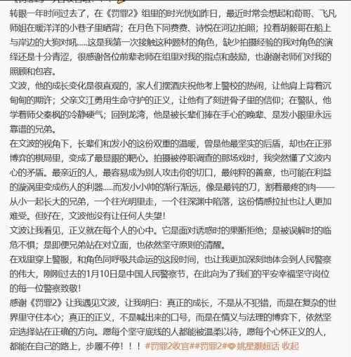 姚星灏告别文波,他是唯一写了长文的小演员。