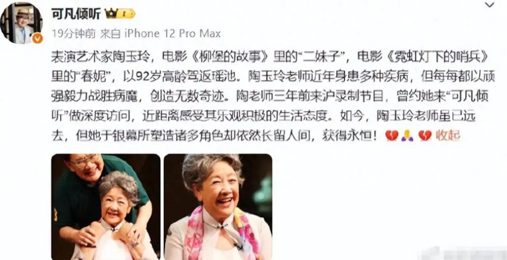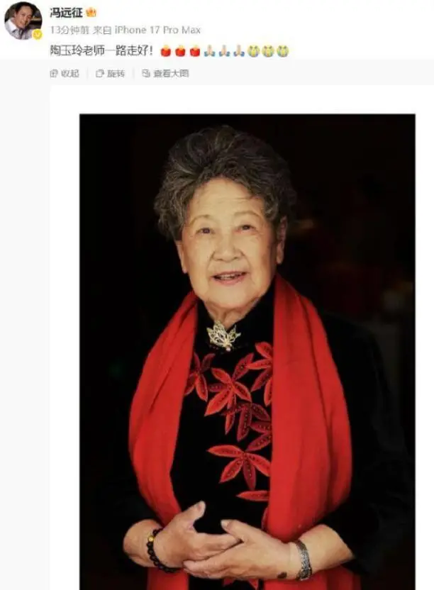 而就在聂棋圣去世的当天晚上,娱乐圈的两位大咖宣布了92岁“老艺术家”陶玉玲去世的消息,
