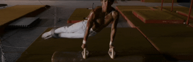 电影中有这样一个名场面,阿信在体操馆里独自训练,一次次从单杠上摔下,又一次次爬起,汗水浸透训练服。