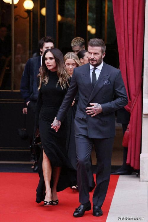 维多利亚和贝克汉姆一家从酒店出发去领骑士勋章。维多利亚身穿黑色高开叉礼服,贝克汉姆穿合体的灰色西装,两人很般配。贝克汉姆一直牵着维多利亚的手,孩子们都跟在他俩身后。贝克汉姆和维多利亚很甜蜜,老贝满脸笑意。
