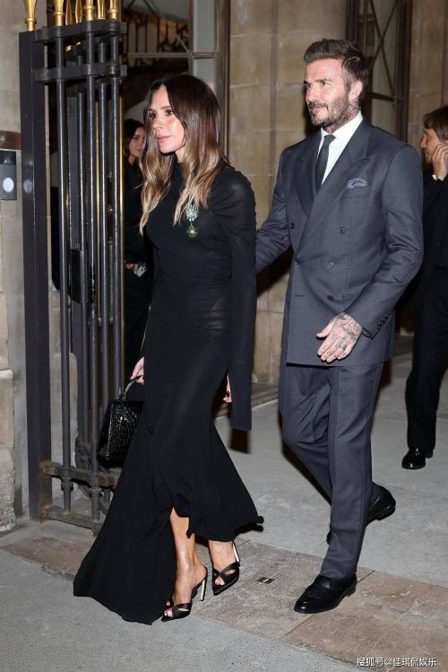 维多利亚身上穿的这件小黑裙是她自己设计的,这条裙子显得她身材修长,裙子下摆的斜裁设计很独特,她的设计和剪裁都很棒,难怪会在时装周被法国政府授勋,她很有设计才华。