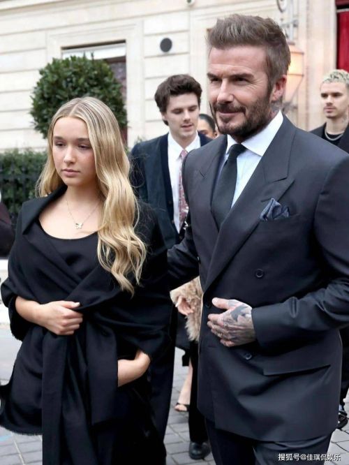贝克汉姆和维多利亚全家盛装出席巴黎时装周,维多利亚获得了法国政府颁发的“国家艺术和文学骑士勋章”。维多利亚和女儿小七都穿上了小黑裙,维多利亚身材紧致大气,