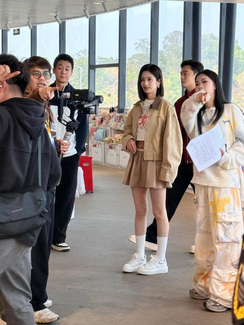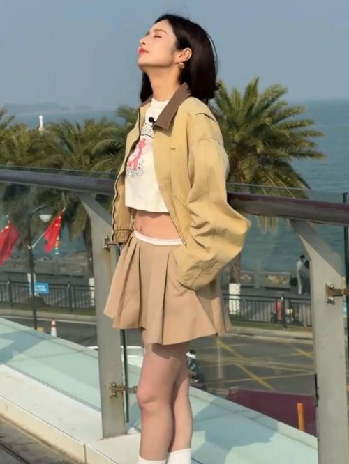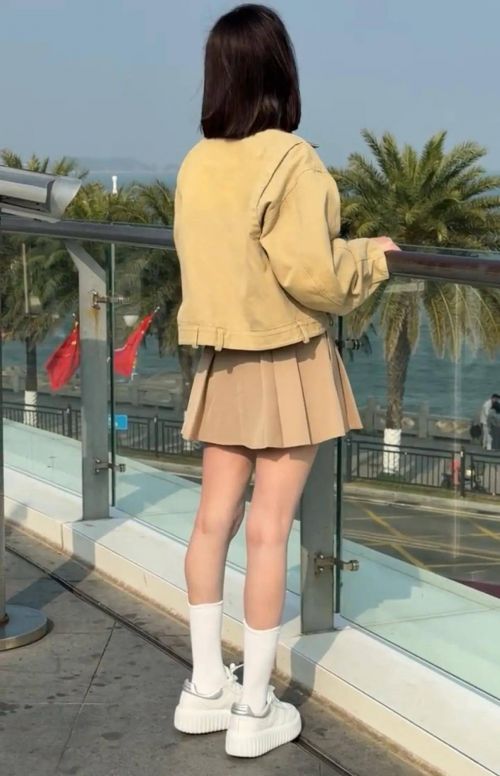 纤细的腰线、修长的双腿,在街头环境下依旧很抢眼,少女感直接拉满。