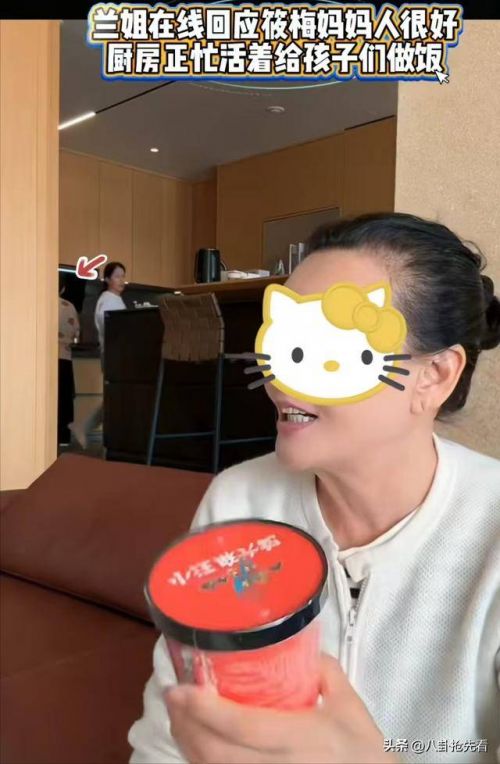 她直播的时候一直很开心,这时候大家发现兰姐坐在沙发上,但是她身后有两个身影太熟悉了,一个是小杨阿姨,一个是马筱梅的妈妈,对方一直在厨房里忙活,也不说话。