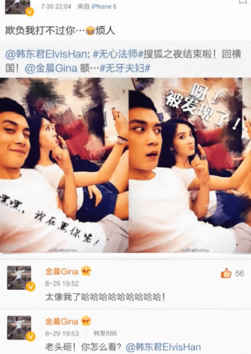 两人分手时,金晨很体面,但韩东君的文案有些含沙射影,粉丝们猜测:是金晨先变心了。