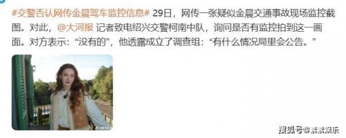 交警回应了3个字“没有的”!不过警方已经成立了调查组,对该事件展开调查,而金晨和助理将有可能面临被传唤调查。
