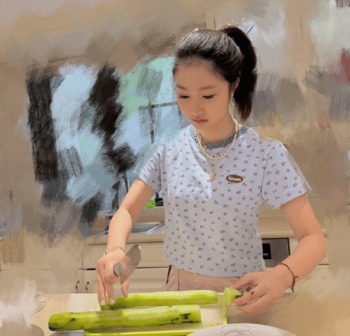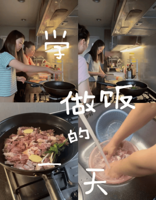 即便父母离婚,但是对奶奶还是有很深的感情的,加上文章也经常会带着孩子跟奶奶相处,自然感情很好,穿着小香风背着包包站在楼上看风景的样子太温柔优雅了,文君竹非常喜欢做饭,经常会在社交平台上分享自己做饭的视频和照片,可见马伊琍教的有多好了。