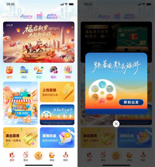 猫眼娱乐和美团在双平台搭建起“影旅融合”一站式补贴活动页。