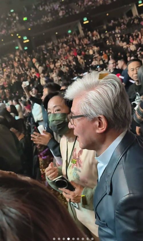 陪伴朱玲玲看演唱会的是丈夫罗康瑞。罗康瑞头发已经全白了,穿了立领的白衬衣,搭配了深色的皮质外套。其实在现场看到罗康瑞,并不意外,他与朱玲玲再婚17年,感情从未生变,而且一直很恩爱,即便再忙,他也一定不会错过陪伴朱玲玲,旅游也好,看演唱会也好。要说意外,更多的还是朱玲玲的三个儿子霍启刚、霍启山与霍启仁也在场陪着母亲与继父一起看演唱会。