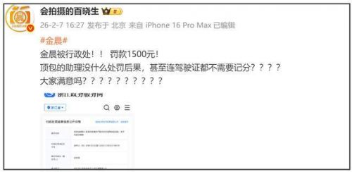 金晨肇事逃逸的处罚曝光,狗仔晒出金晨的处罚结果,造成致人轻微伤或者财产损失的交通事故后逃逸,罚款1500元,彻底成了违法艺人!