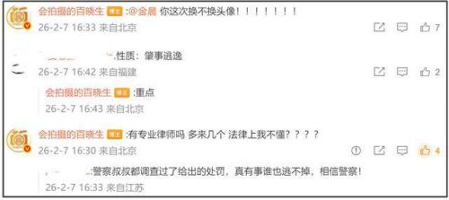 狗仔在发布处罚截图之后,直接艾特金晨,问她这次换不换头像(前几天金晨道歉后换头像阴阳网友)……
