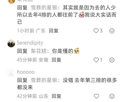 但也有明眼人点破真相,原来这次来的明星更少,去年排第三排的今年很多都没来。