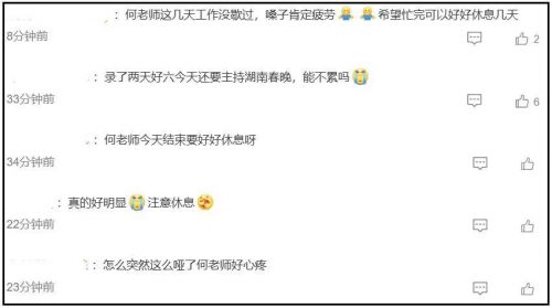 何炅一开口嗓子就哑了,汪涵也有种强打精神的感觉,何炅还要帮湖南卫视找补,调侃自己嗓子哑了是因为彩排跟唱。