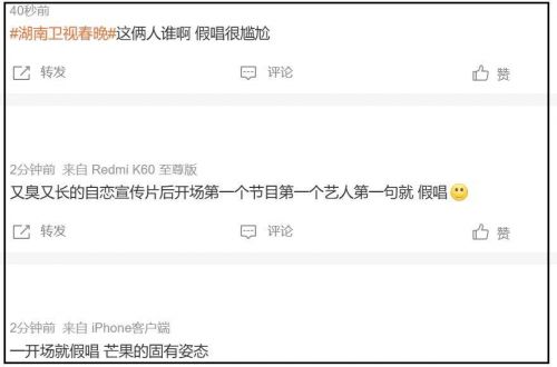 只能说湖南卫视春晚节目没编排好,上来就是好几个明星疑似假唱,引发了网友逆反,连带着收视率都受影响了。